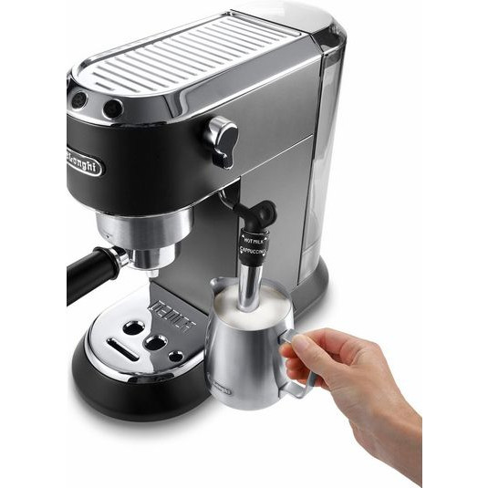Dankzij de 15 bar drukpomp en het professionele filtersysteem zet de De'Longhi EC685.BK Dedica Zwart espresso van uitstekende kwaliteit. Of je nu een sterke espresso, een romige cappuccino of een heerlijke latte macchiato wilt, met dit apparaat kun je je favoriete koffie met gemak bereiden. Het stoompijpje maakt het zelfs mogelijk om melk op te schuimen voor een perfecte cappuccino.